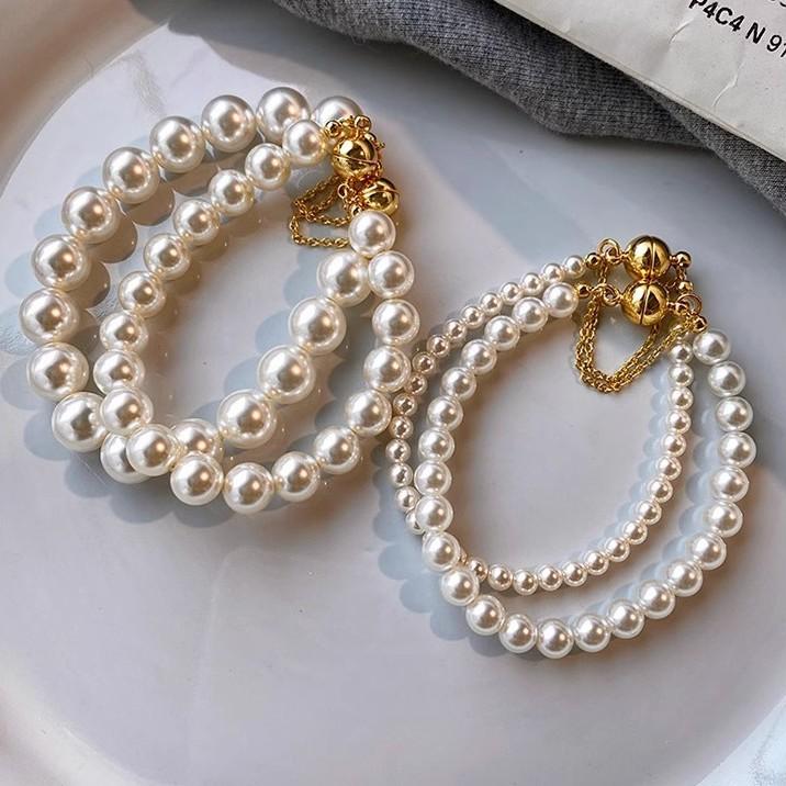 Anti Loss Round Strong Light Magnetic Buckle Pearl Bracelet