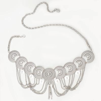 European Style Silver Metal Waist Chain With Sculpted Design For Boho Party And Stage Shows