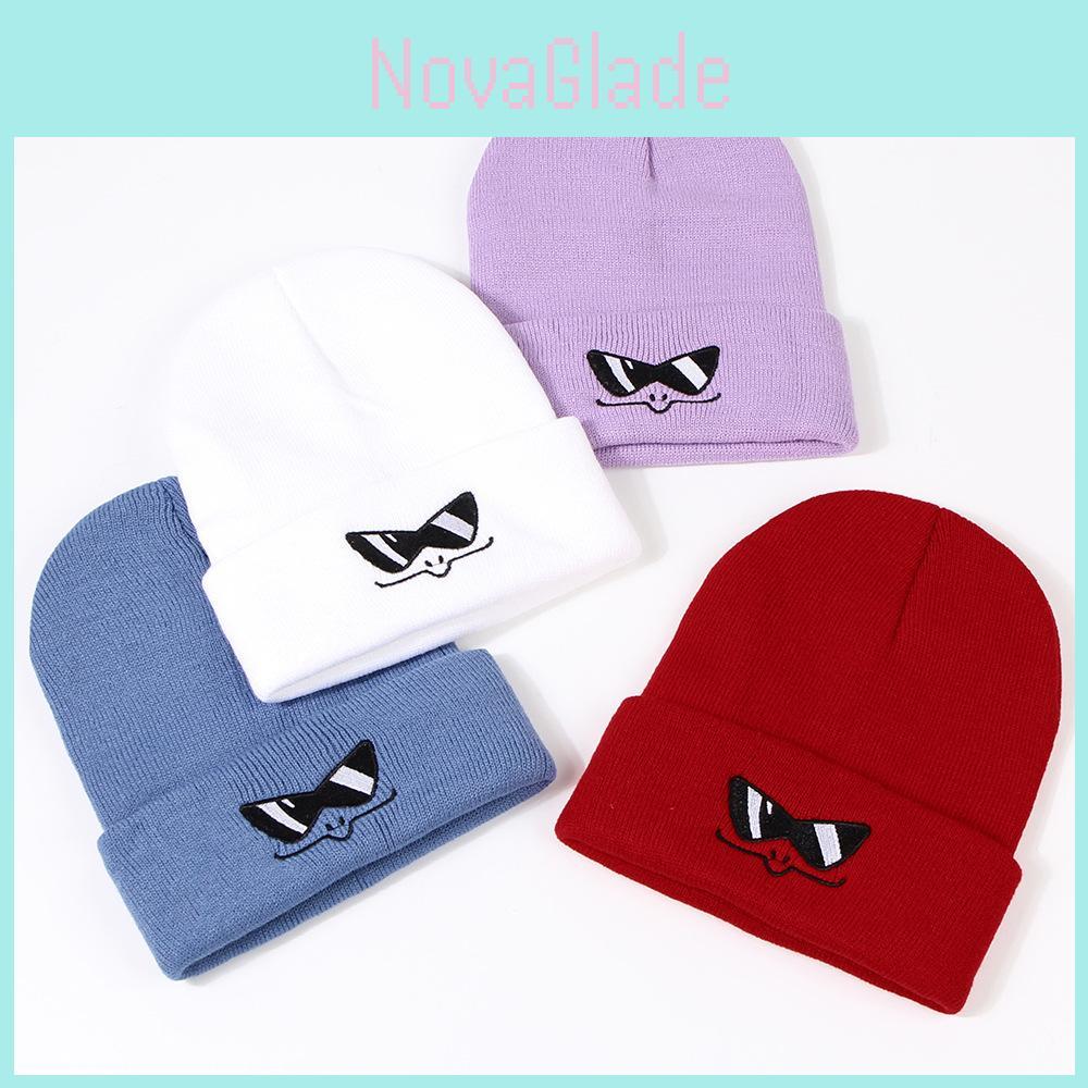 Funny Cartoon Sunglasses Knit Hat Autumn Winter New Embroidered Woolen Knit Hat Warm Female Trend