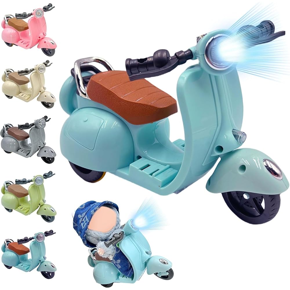 Ruokey Mini Electric Scooter Toy with LED Lights and Sound 360° Rotating Motorcycle Desktop Ornament for Collectors Blue 17cm