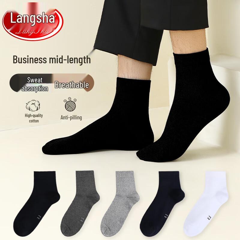 Langsha Men's Thin Breathable Mid-Calf Business Socks