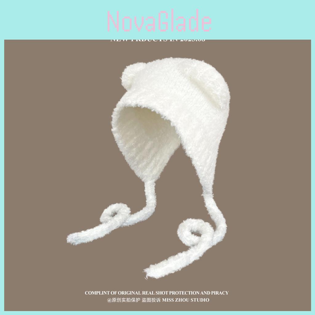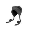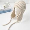 Cute Bear Ear Knit Hat For Women Winter Warm Plush Earmuffs Tie Headband Cap