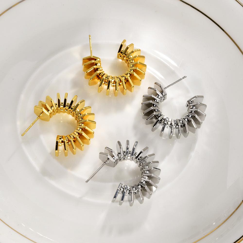 Attributes: Style: Industrial Modern, Shape: Radiating Scale, Material: copper alloy, Jewelry Metal: copper alloy, Feature: Heavy Metal Texture, 3D Radiating Scales, C-Shaped Silhouette, High-Polished Finish, Statement Accessory
