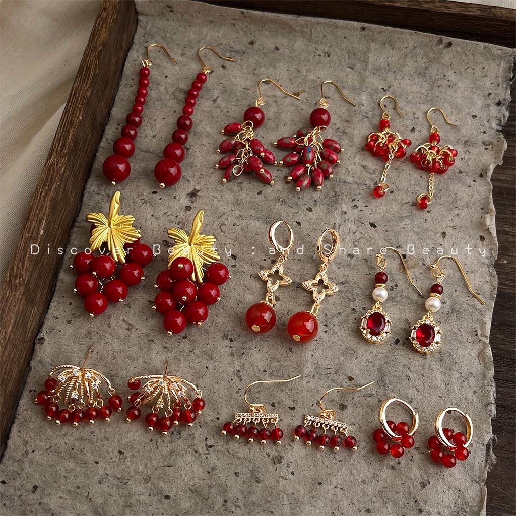 Retro Red Agate Tassel Earrings: Luxurious Chinese Court Style