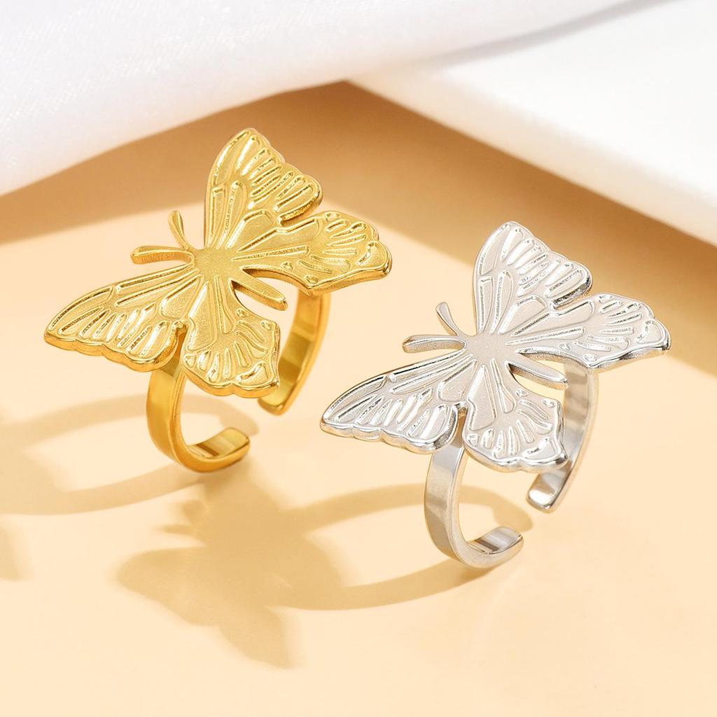 Retro Elegant Butterfly Ring: Pastoral Style Adjustable Stainless Steel Jewelry for Women.