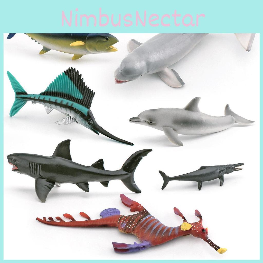 This collection of realistic marine animal models features detailed replicas of whales, sharks, dolphins, and more, crafted from durable plastic. providing precise representations suited for display or educational purposes. These static models are ideal for marine biology displays or aquatic-themed decor. Easy to clean with a damp cloth, they support safe, low-maintenance use in classrooms, aquariums, or home environments.