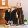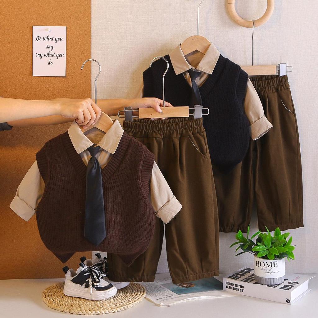 2026 Spring Children's Knit Vest & Long Sleeve Three-Piece Set - Korean Style Fashion for Boys
