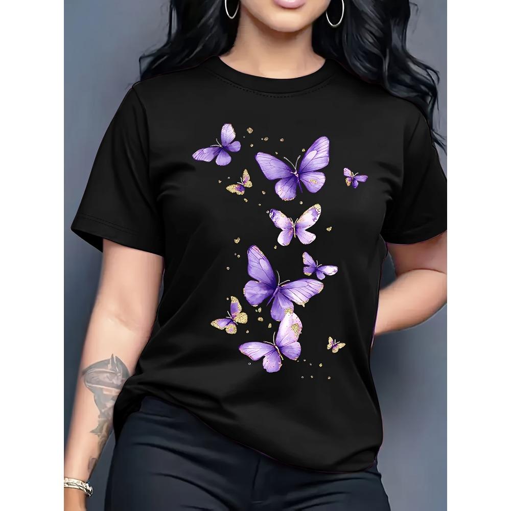 Butterfly Print T-shirt Short Sleeve Crew Neck Casual Top for Summer Spring Women's Clothing Harajuku Short Sleeve Casual