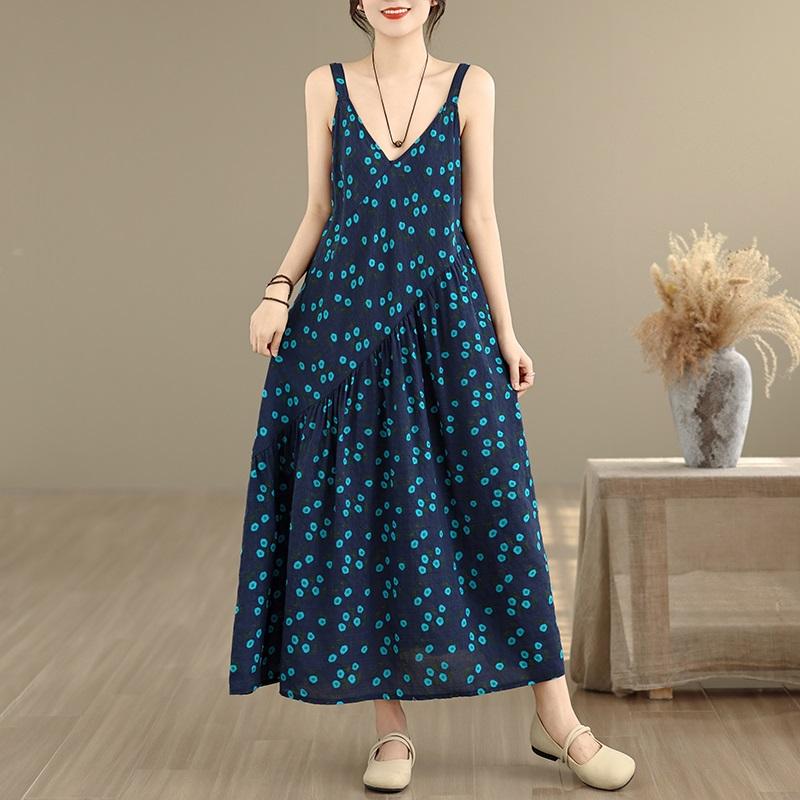 Sleeveless Strap Cotton Vintage Floral New in Dresses For Women Casual Loose Long Summer Dress Elegant Clothing