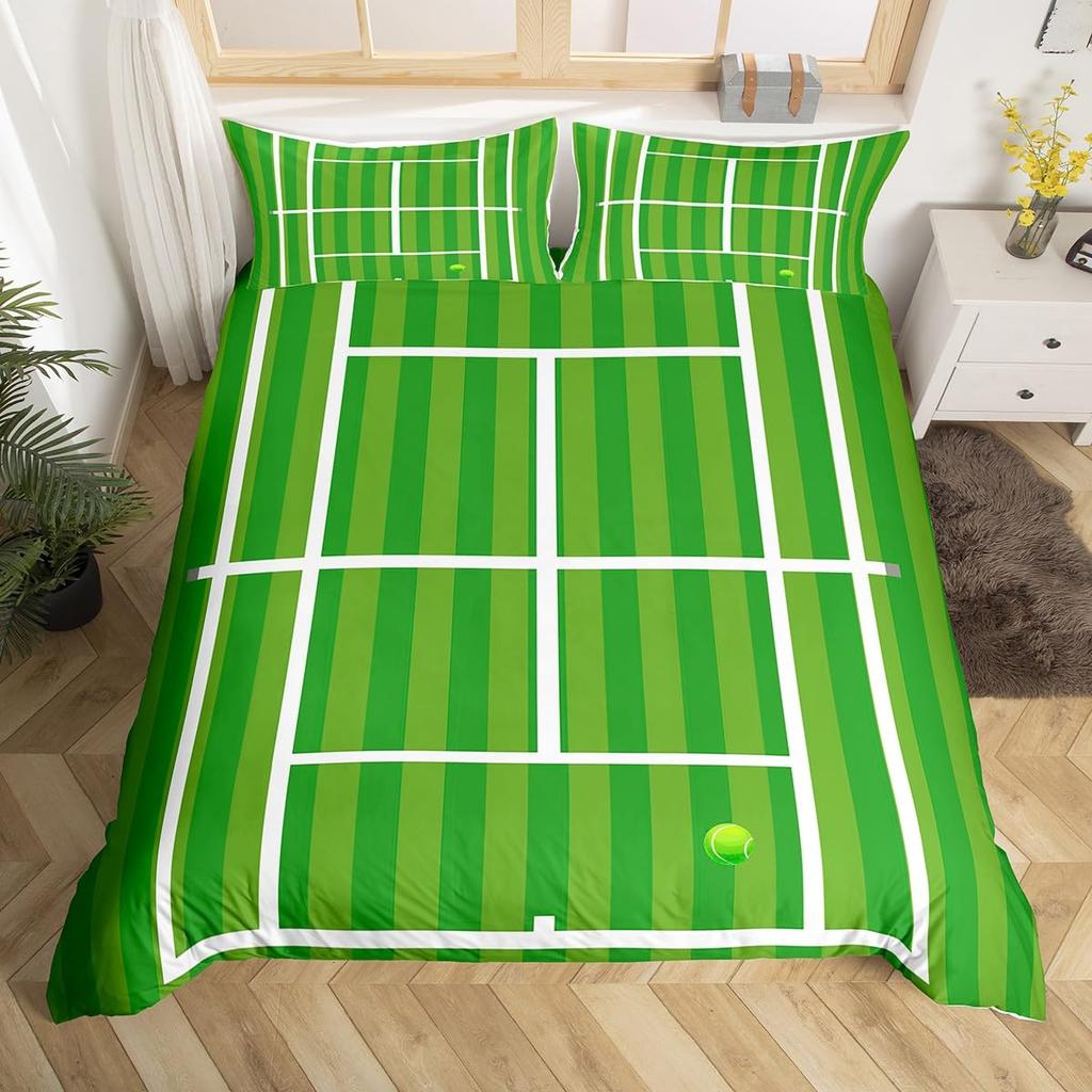 Comforter Tennis Court Twin Queentennis Competition Sports Game Grassland Comforter Geometric White Stripes Bedding Set