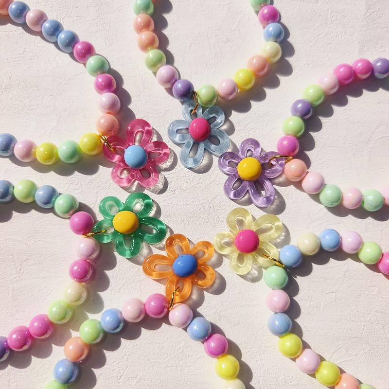 Handmade Color Beaded Pet Necklace Cute Flower Accessories Acrylic Cat and Dog Accessories Princess Style Decorative Collar