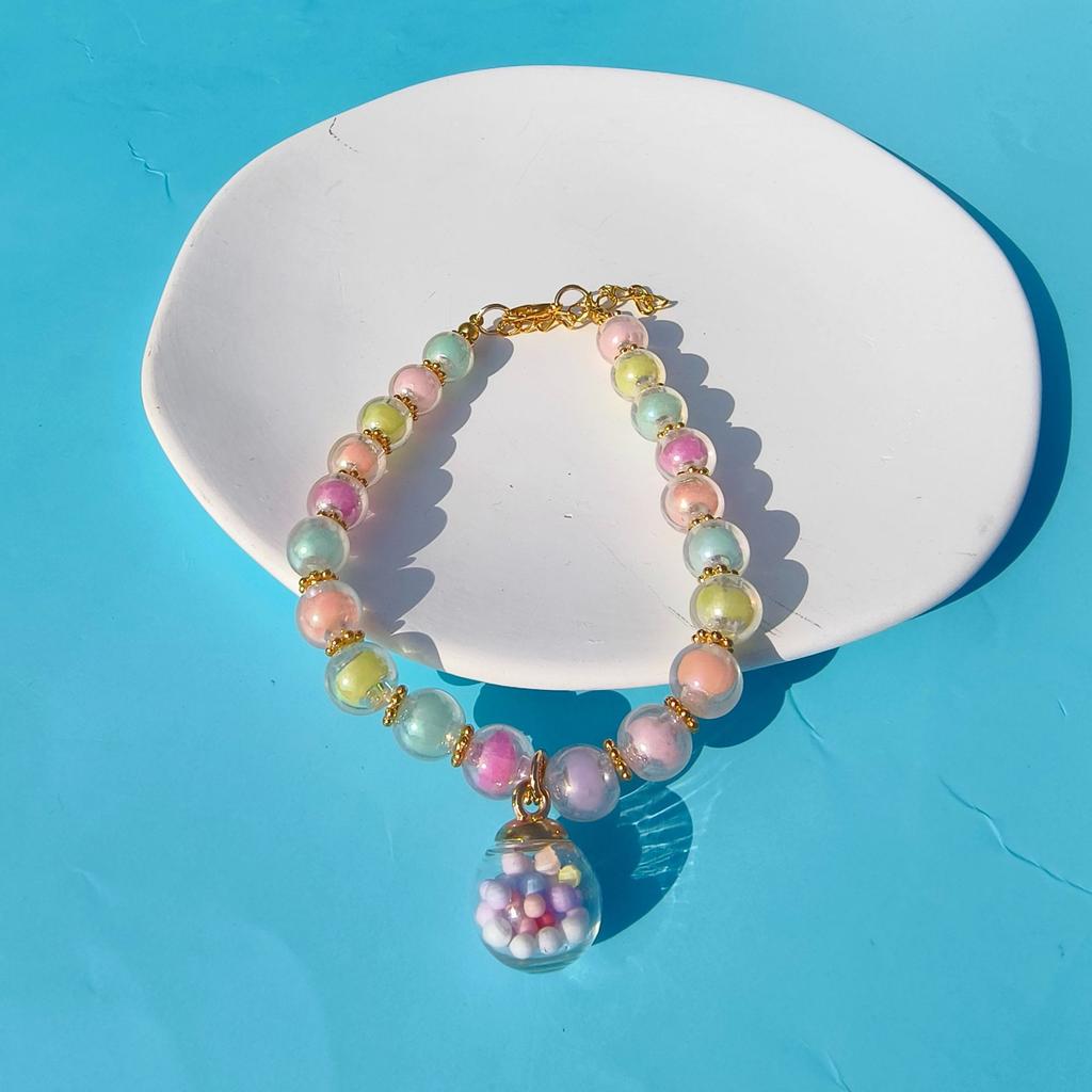 Colored Pet Pearl Collar Gold Bead Separated Handmade Dog Cat Collar Glass Ball Pendant