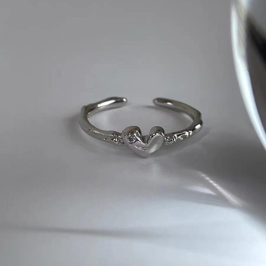 925 Silver Irregular White Square Diamond Zircon Heart Ring Ins Women's Fashion Light Luxury Open Adjustable Stackable Niche Minimalist