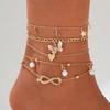 3 Pcs Sparkling Chain Anklet Sets for Women Zircon Heart MultiLayer Copper Bracelet On Leg Foot Trendy Summer Beach Jewelry Gift