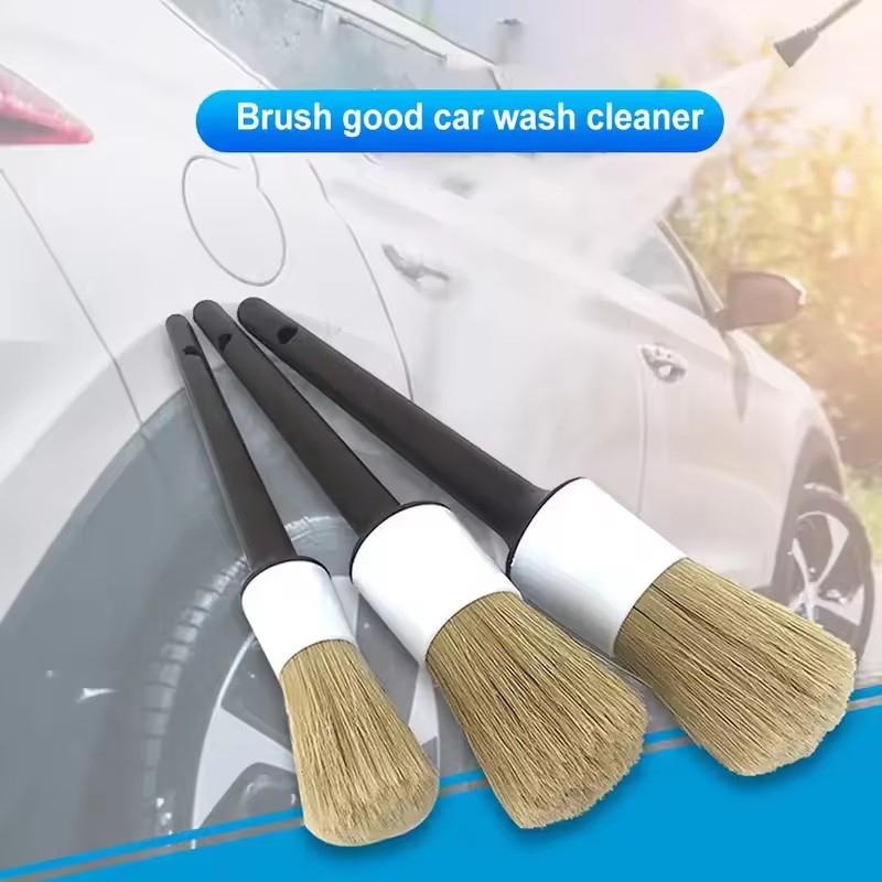 3 יחידות מברשות פרטים חיצוניות ופנימיות לרכב, מברשות עם זיפים משיער חזיר לניקוי רכב, כלי פירוט אוטומטי, מברשת ניקוי ללוח מחוונים