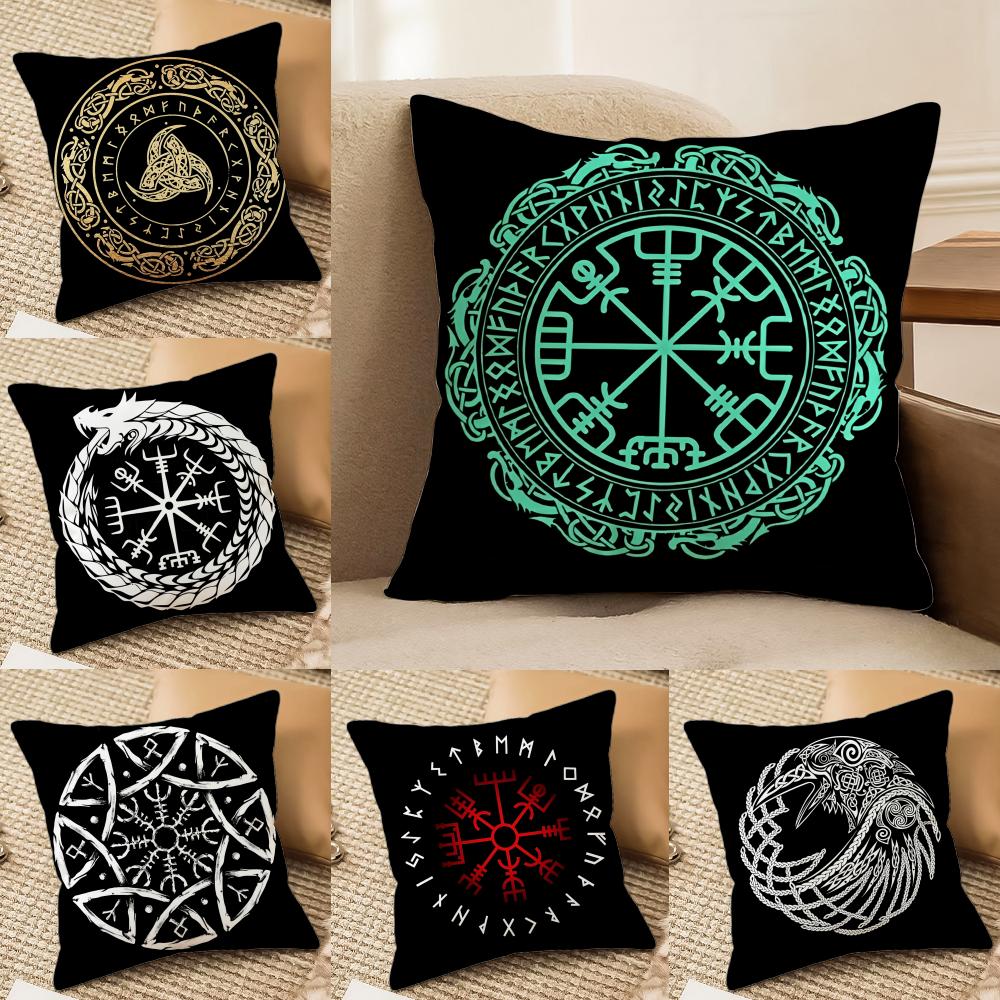 Pattern VVikingS AAmuletS Cushion Cover Short plush Doublesided Print Square Throw Pillow Covers Sofa Home Cushion Decor