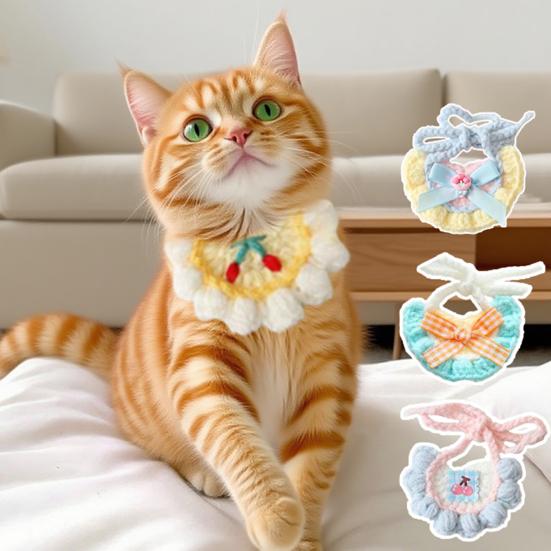 Knitted Cat Bib Adjustable Cute Pet Bib Soft Breathable Pet Bib with Bow Flower for Cats And Small Dogs Photo Prop