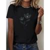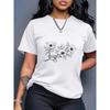 Cotton Women T-Shirts Fashion Simple Line flower Paintin Tees Casual Soft Short Sleeve Tops Loose Comfortable Street Clothes