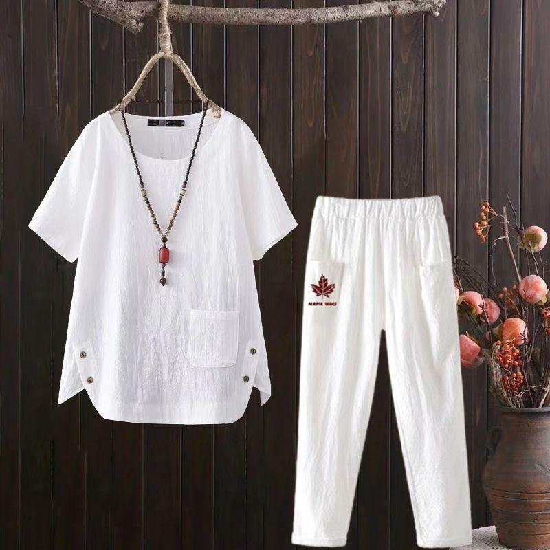 Size:M,Top Length: 62cm, Bust: 102cm, Shoulder:44cm,Sleeve:15cm,Waist: 64-84cm, Pants Length: 83cm, Hips: 104cm