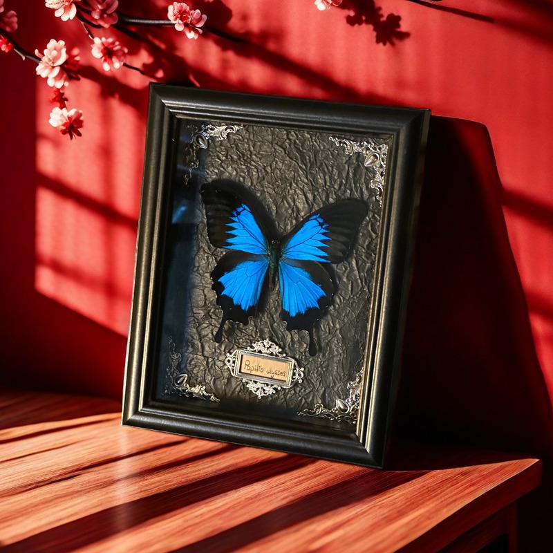 European & American Style Retro Real Butterfly Specimen Display: Glass Photo Frame for Tabletop Decor with Small Pets, Cats, & Reptiles