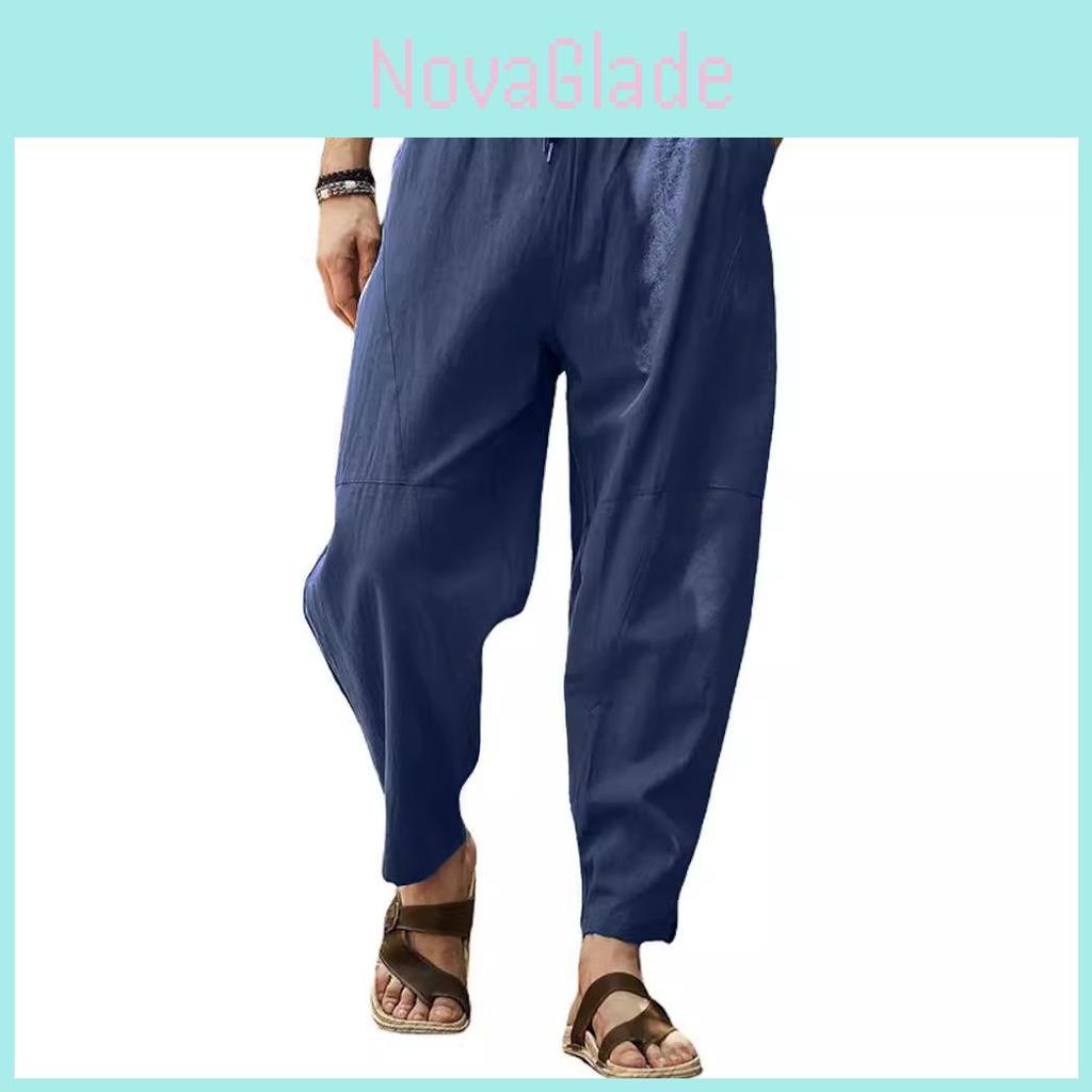 Hip Hop Mens Loose Cotton Linen Drawstring Casual Pants For Urban Style