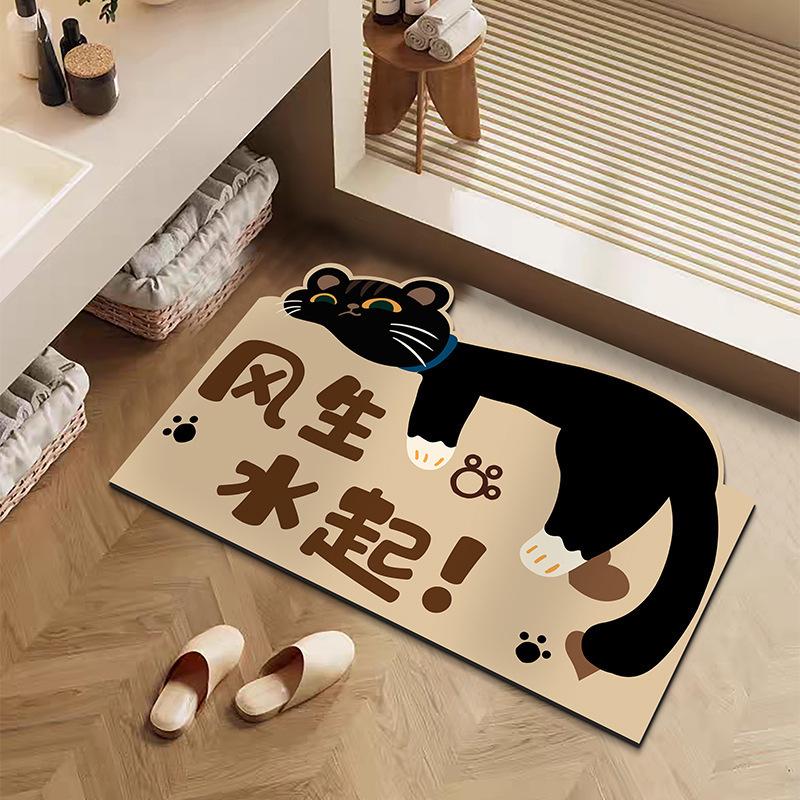 Cartoon Cat Diatom Mud Floor Mat - Dirt & Wear Resistant, Easy-Clean Bathroom Entryway Mat