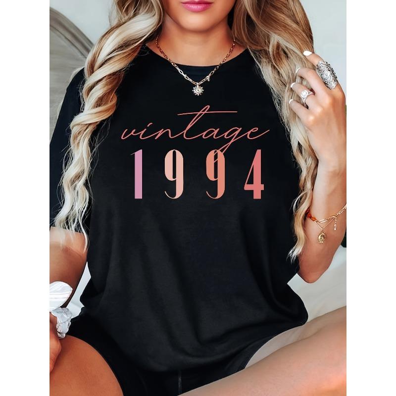 Women's Vintage 1994 30th Birthday Print T-Shirt - Soft Stretch Round Neck Short Sleeve Casual Tee