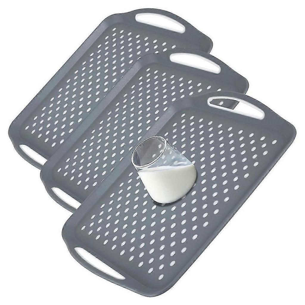 Non Slip Food Serving Tray with Non-Slip Handle Rectangle Gripping Nubs Food Trays Shatterproof Plastic Dinner Trays 3pc