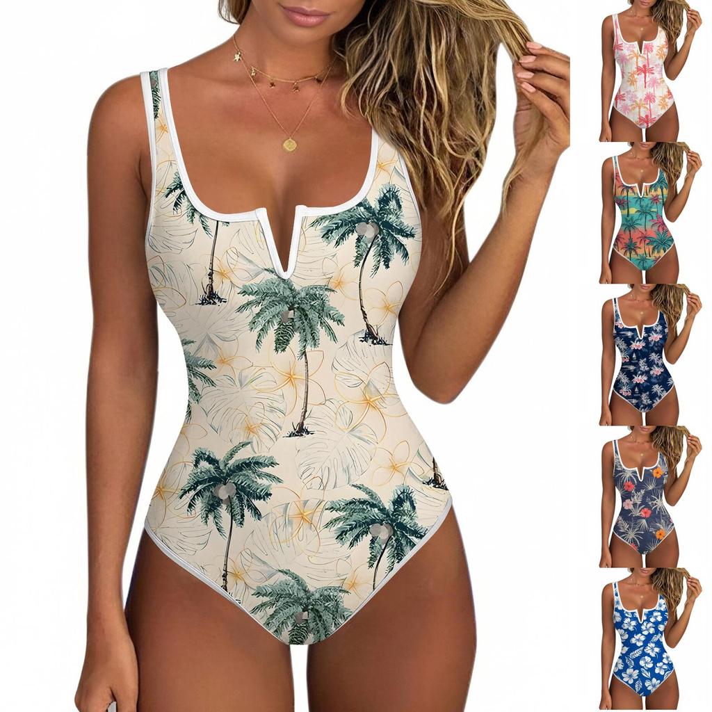 Women's Color-Blocked One-Piece swimsuit With A Sexy V-neck