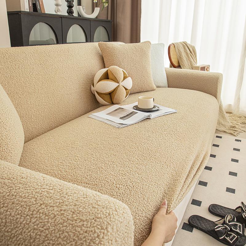 Thickened plush all - encompassing sofa cover with elasticity for lazy sofas provides protection from cat scratches and dust