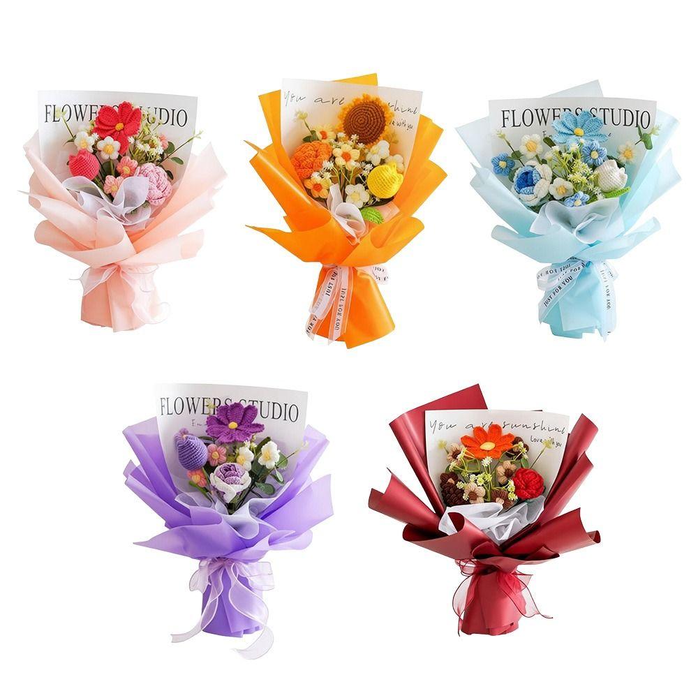 Handmade Gift Bouquet Roses Knitted Artificial Flowers New Knitted Bouquets Mother's Day