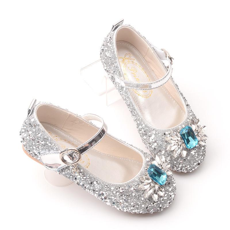 Children's Crystal Princess Shoes New Spring and Autumn Elsa Little Girl's Single Shoes Baby Girls' Leather Shoes