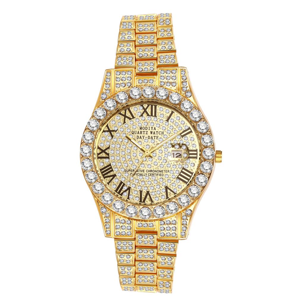 Men's Gold Analog Watch with Roman Numerals, Calendar, Waterproof, Sparkling, Casual, Business, Stainless Steel Band - Perfect for Father's Day, Valen