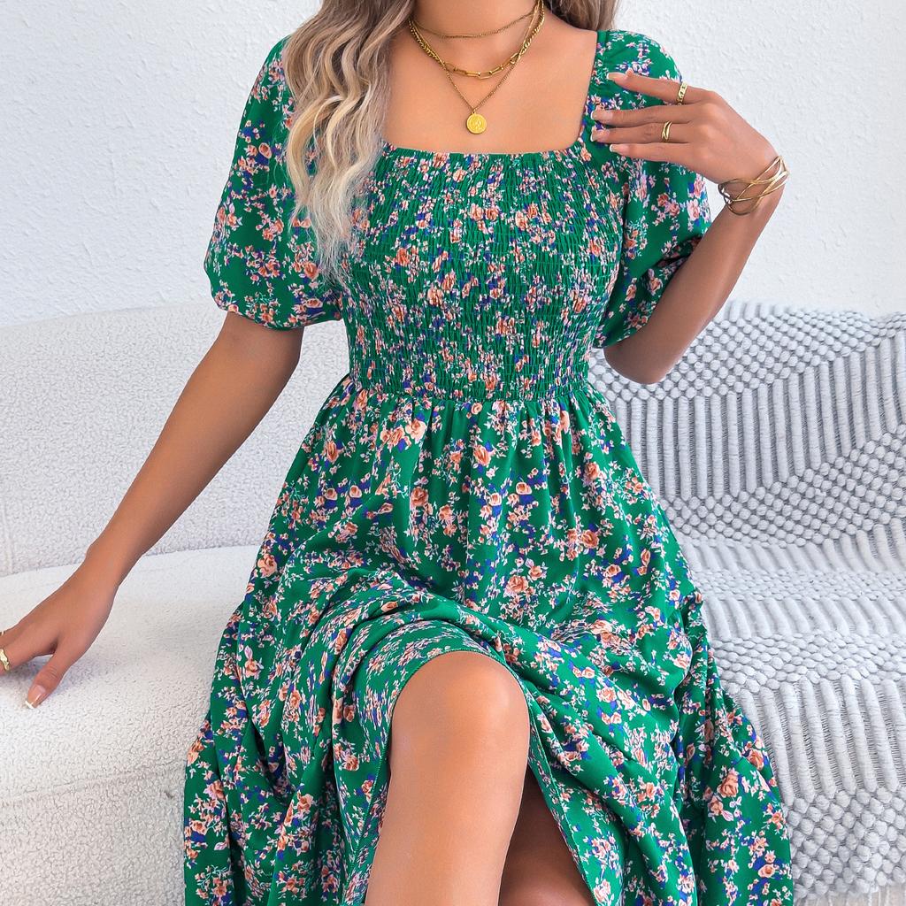 Spring and Summer Sweet Floral Short-Sleeved Loose-Fitting A-Line Sleeveless Dress for Women