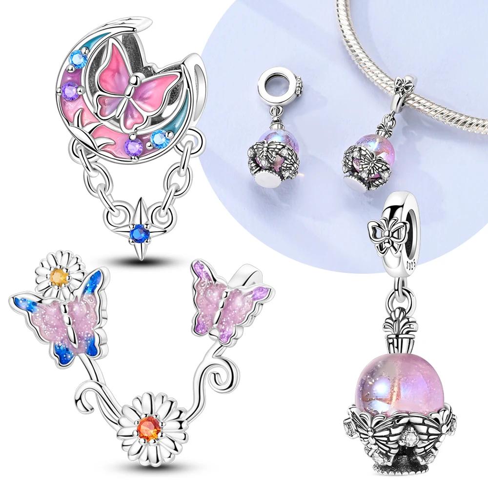 Charm Bead Charms Pink Butterfly Colourful Moon Flower Bead Charms Compatible With Authentic copper Certified Bracelets Anniversary Gift Diy
