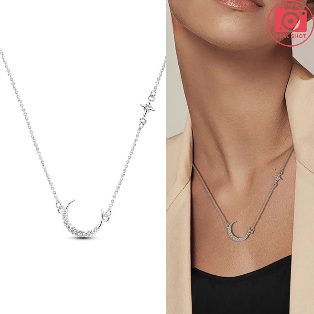 Authentic copper Necklaces Starry Sky Pendant Blue Zircon Moon Star Shape Heart Necklaces Women Jewellery Classical Anniversary Gift