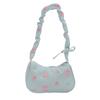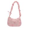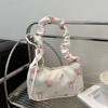 Women's Underarm Bag Summer Canvas Pleated Handlebags Armpit Purse FloralBow Printed Zipper Tote Handbag Female Shoulder Bag