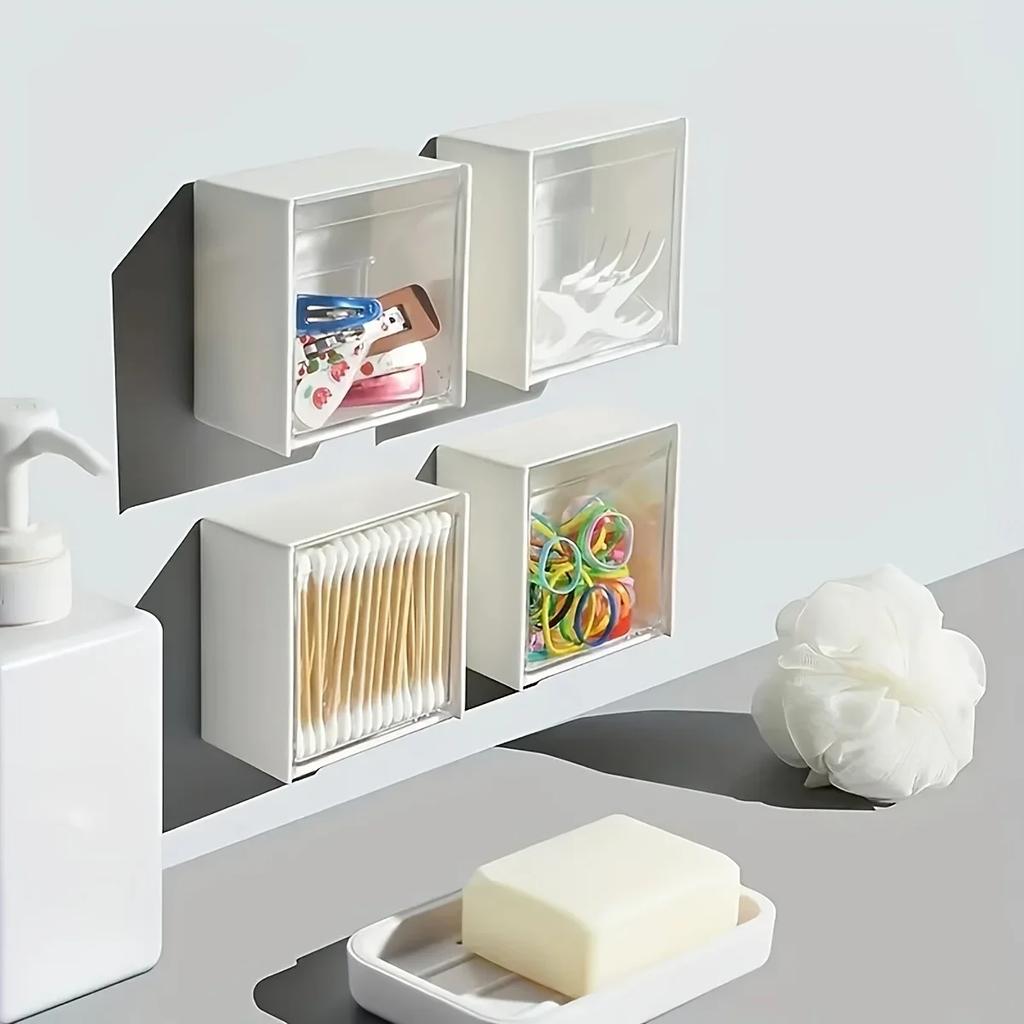 1/6pcs Wall-mounted Flip Storage Box, Punch Free Storage Box, Cosmetic Cotton Swab Multifunctional Storage Box 2 Color Options
