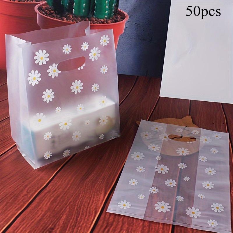 50pcs Daisy Plastic Packaging Bag Reusable Gift Bags Takeout Baking Cake Bakery Bag Transparent Birthday Wedding Party Gift Bags