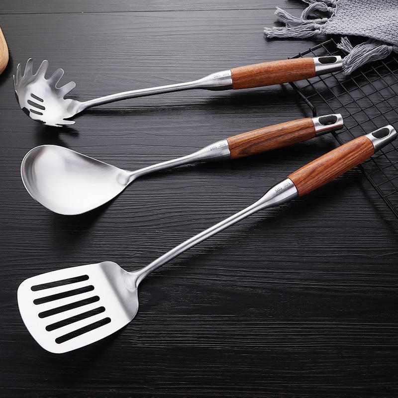 304 Stainless Steel Wood Handle Wide Fried Fish Spatulas Steak Shovel Fish Turner Slotted Beveled Kitchen Cooking Utensils