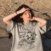 Womens Light Grey Cartoon Cat Print TShirt Playful I Love You Dad Graphic Fit Summer Casual Tee Aesthetic Clothes