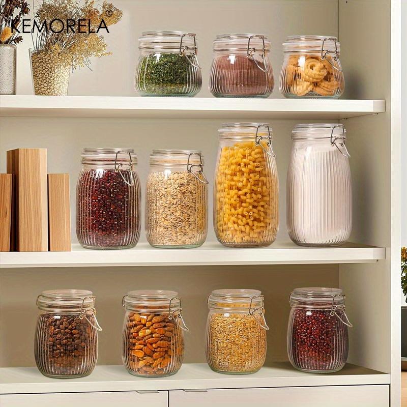 2PCS Airtight Glass jar with lid Glass Storage Containers with Lids Striped Clip Fastening Jar for for Canning Pasta Coffee Bean
