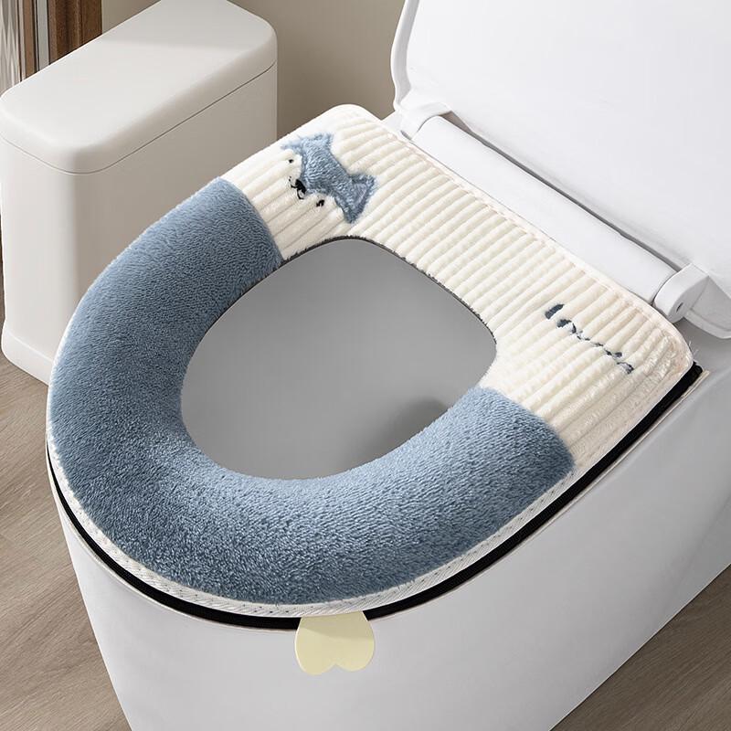 This PULIAN warm winter toilet seat cover features a charming spliced little fox design in blue. Made from soft polyester fiber, it provides comfort and warmth during colder seasons. Its anti-slip design ensures a secure fit.