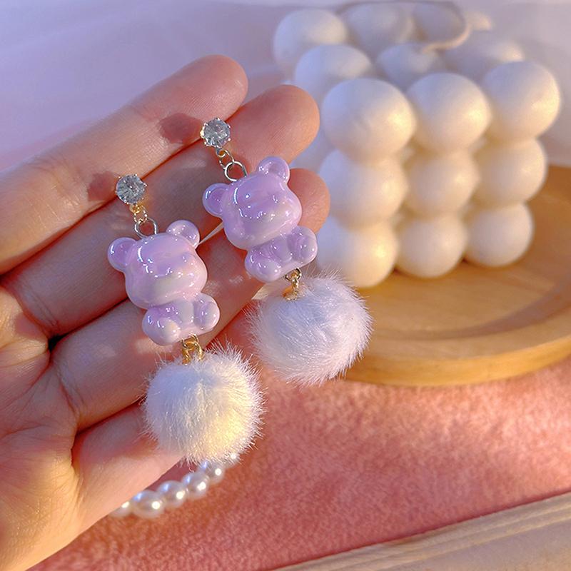 עגילי דוב מצויר צבעוני ענן כדור פרווה פשוטים וחמודים דוב אסימטריים יצירתיים תכשיטי מסיבה מתנה אביזרים