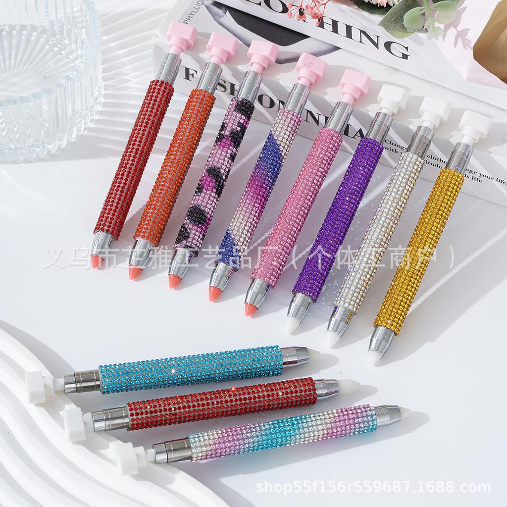 Diamond-encrusted nail art tools Double-head point pen wholesale Rotary push-pressing mud Sticky drill point pen Wave point drill pen