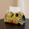 Vintage PU Leather Tissue Box Holder Oil Painting Durable Napkin Container Decorative Car Tissue Box Bathroom