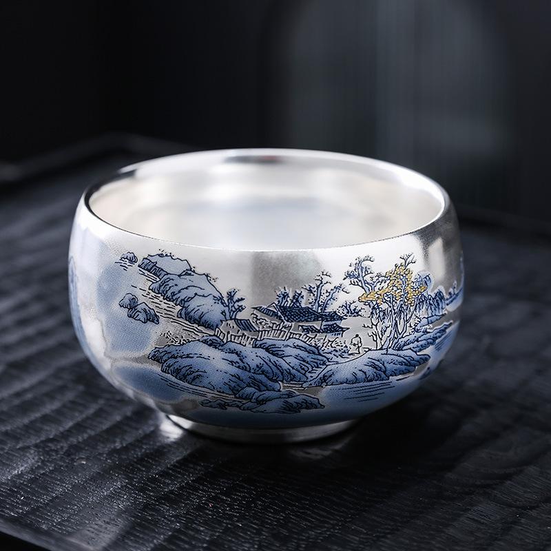 999 Silver Gilded Master Tea Cup Handmade Ceramic with Enamel Decoration Luxury Gongfu Teaware for Collector Gift