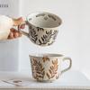 Mid-Century Modern Stoneware Mug Vintage Luxury for Latte Floral Tea Home Office Use High Aesthetic Ceramic Cup Gift