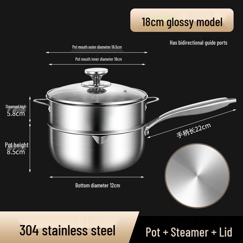 This versatile 18CM cooking pot is crafted from high-quality 304 stainless steel, ensuring durability and safety without any coatings. It comes complete with a matching 304 stainless steel steamer insert, making it perfect for steaming vegetables, dumplings, or warming milk. Ideal for various cooking tasks like preparing soup or noodles, it's compatible with electric ceramic stoves and designed for everyday use.