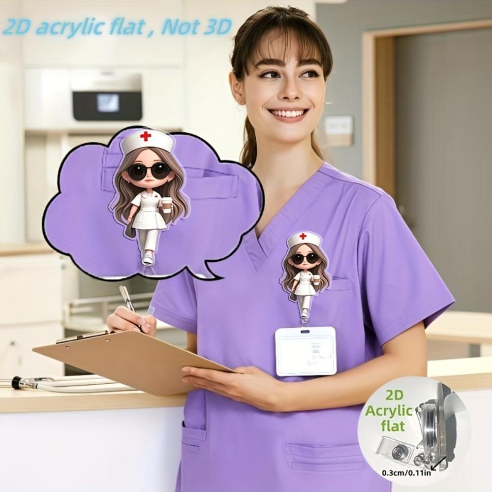 2D Acrylic Elegant Nurse Badge Reel For Women Retractable ID Holder Office Work Gift